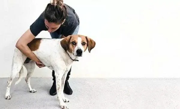 Dùng tay bóp mạnh vào vùng thắt lưng của chó, giữ nguyên trong vài giây.